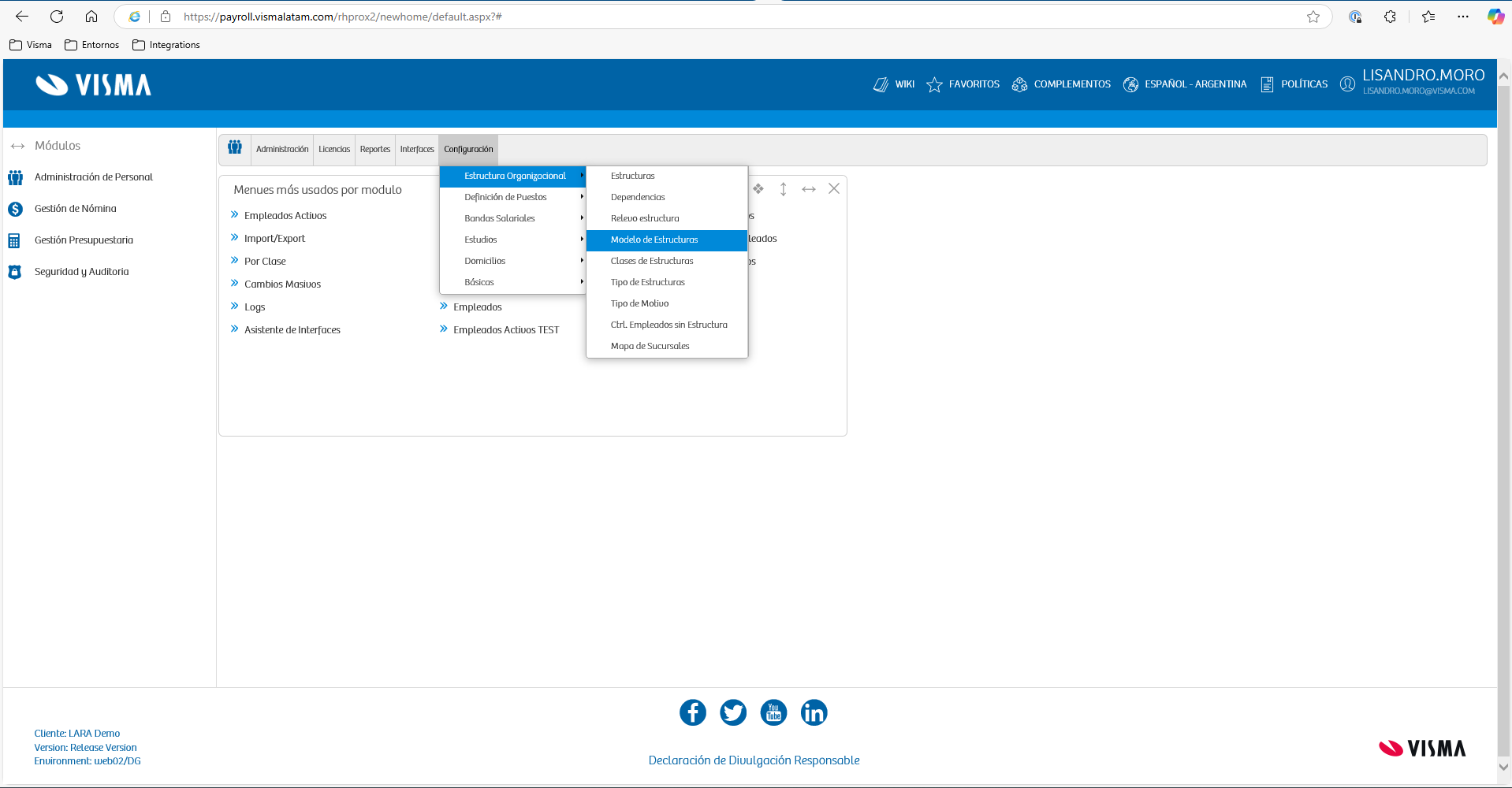 D. Por último, dirígete a Administración de personal -> Configuración -> Estructura Organizacional -> Modelo de Estructuras.
