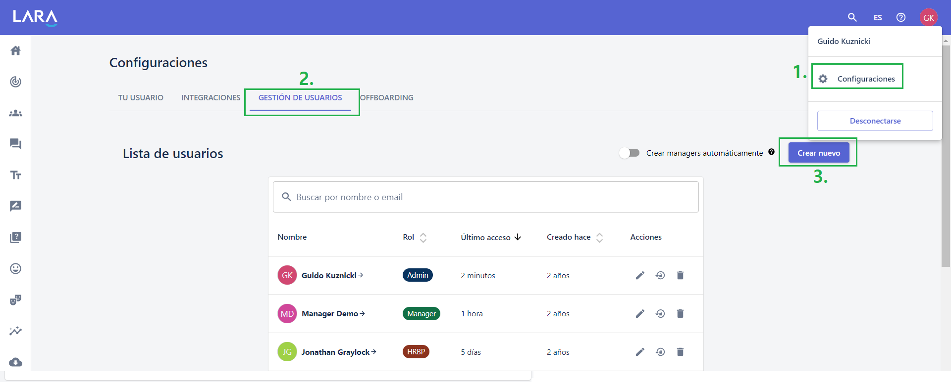 2) Luego Haz click en “Gestión de usuarios”