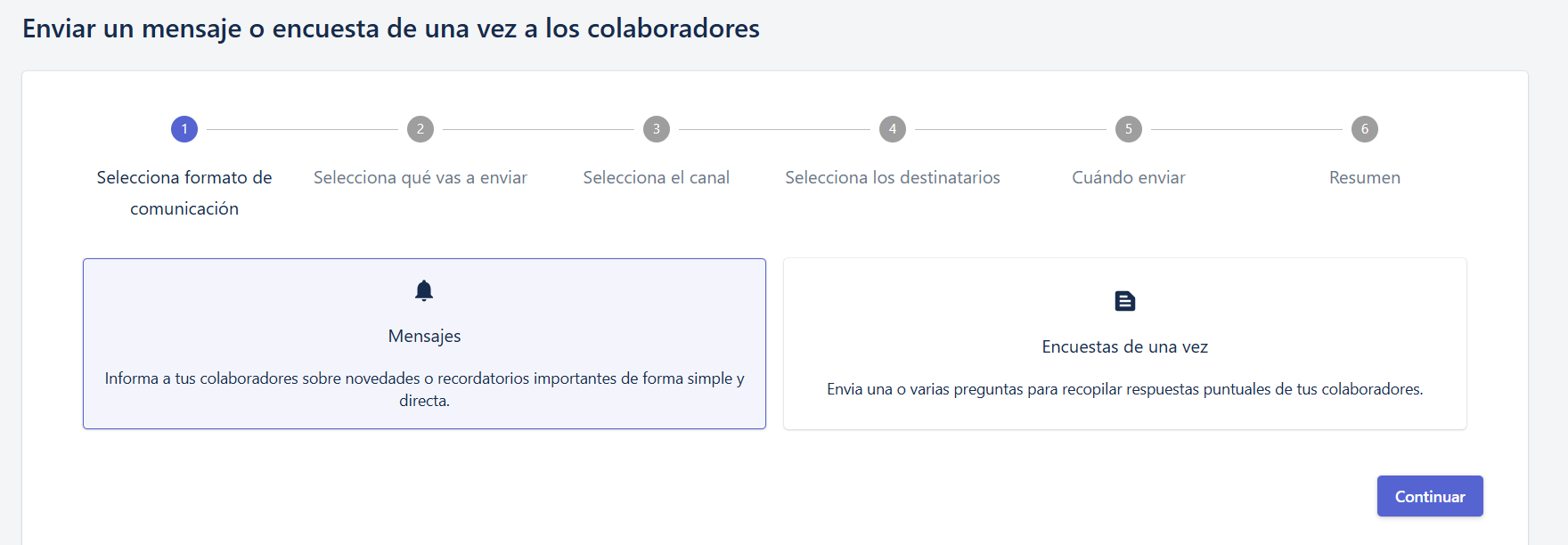 Elige "Enviar un mensaje o encuesta de una vez a los colaboradores".